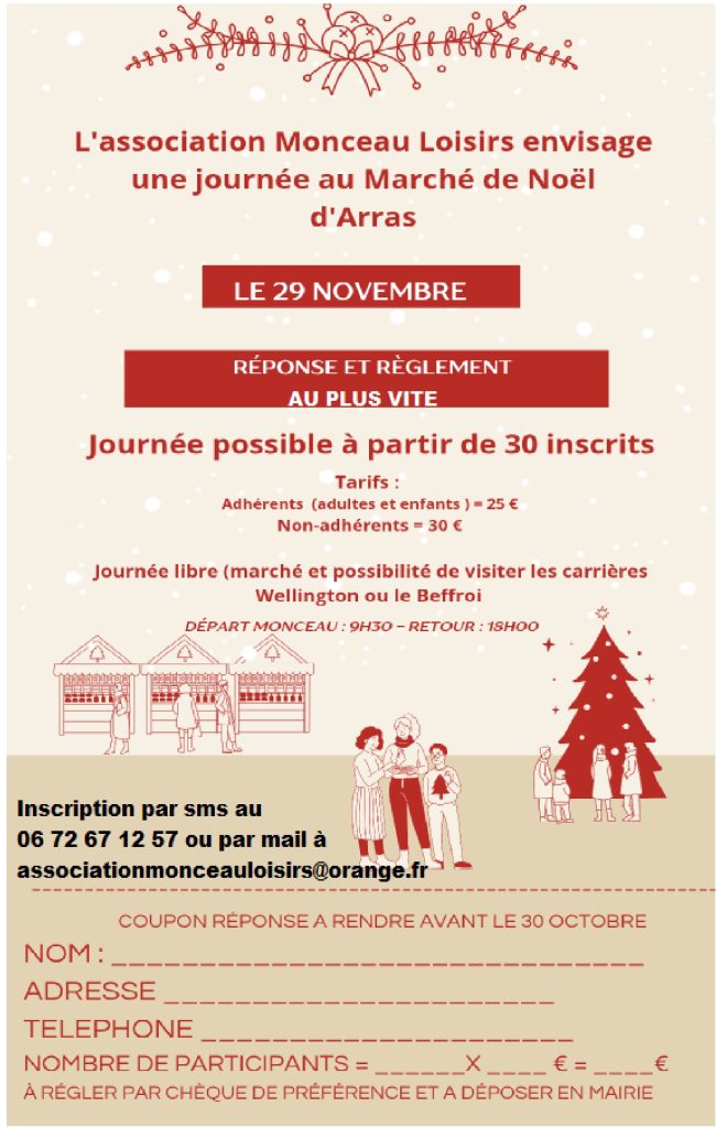 L’association Monceau Loisirs organise une journée au Marché de Noël d’Arras le 29 novembre.